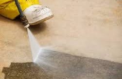 Professionelle Reinigung von Teppichböden und Teppichflächen, oft mit speziellen Reinigungsverfahren wie Dampfreinigung oder Shampoonierung.